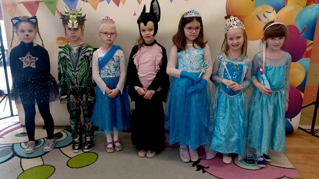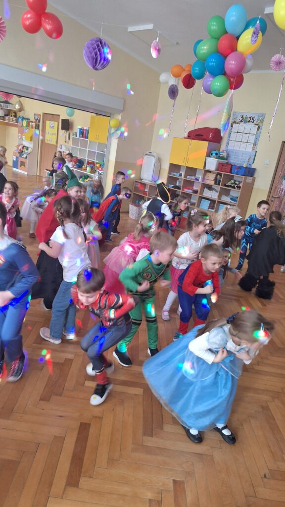 Karnawał to tradycja przepełniona muzyką i zabawą, ważnym elementem tego okresu są bale karnawałowe. Dla naszych przedszkolaków dzisiejszy dzień był niezwykły wyczekiwany przez wiele tygodni. Karnawałowe szaleństwo rozpoczęło się wcześnie rano i trwało aż do popołudnia. Przedszkolaki przebrane były za bohaterów różnych bajek, a w salach przedszkolnych można było spotkać: wróżki, królewny, rycerzy, piratów oraz policjantów. Wspólna zabawa przyniosła dzieciom wiele radości i mnóstwo uśmiechu.