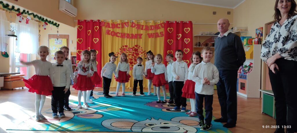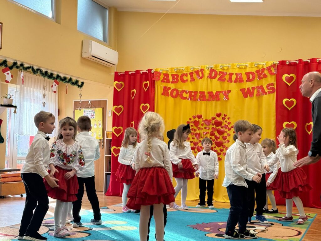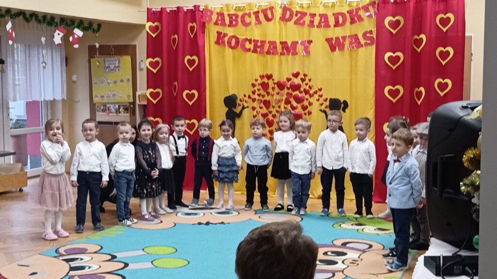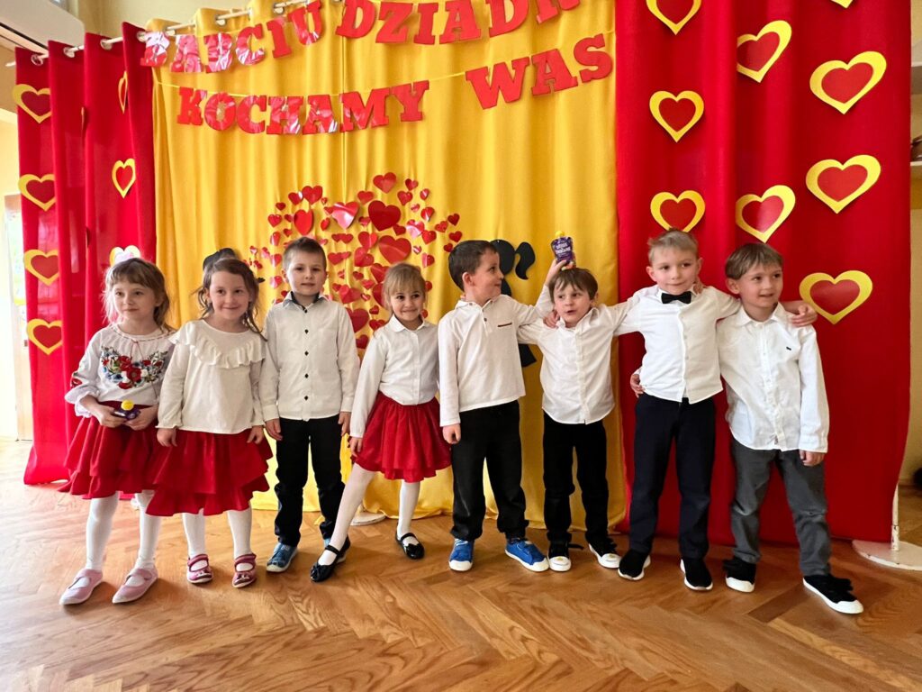 Świętowanie dnia Babci i Dziadka w naszym przedszkolu rozpoczęliśmy od występów naszych wspaniałych przedszkolaków Biedronek z grupy II oraz Plastusiów z grupy V. Było mnóstwo uśmiechów wzruszeń oraz radości. W przepięknej scenografii oraz wyjątkowej atmosferze, wnuczęta wspaniale wystąpiły przed bliskimi. Szczęśliwe i rozpromienione twarze babć i dziadków dały wyraz tego, jak ważne są takie spotkania i chwile spędzone z wnukami.